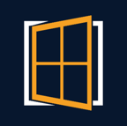 Fensterbau.org Logo mit Fenster-Symbol und 5.0 Bewertung mit 5 goldenen Sternen.